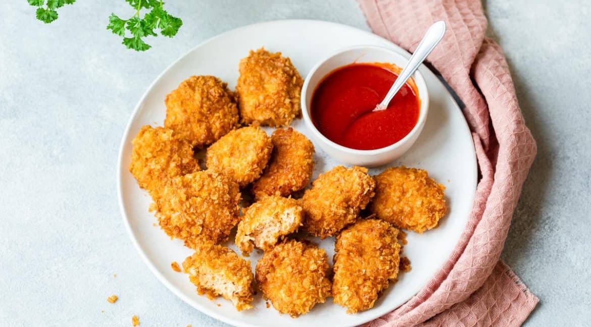 - Fett in einer Pfanne erhitzen, die Masse zu Nuggets formen, in Cornflakes wenden und bei mittlerer Hitze goldbraun braten