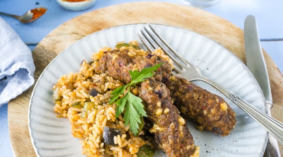 Cevapcici mit Gemüsereis